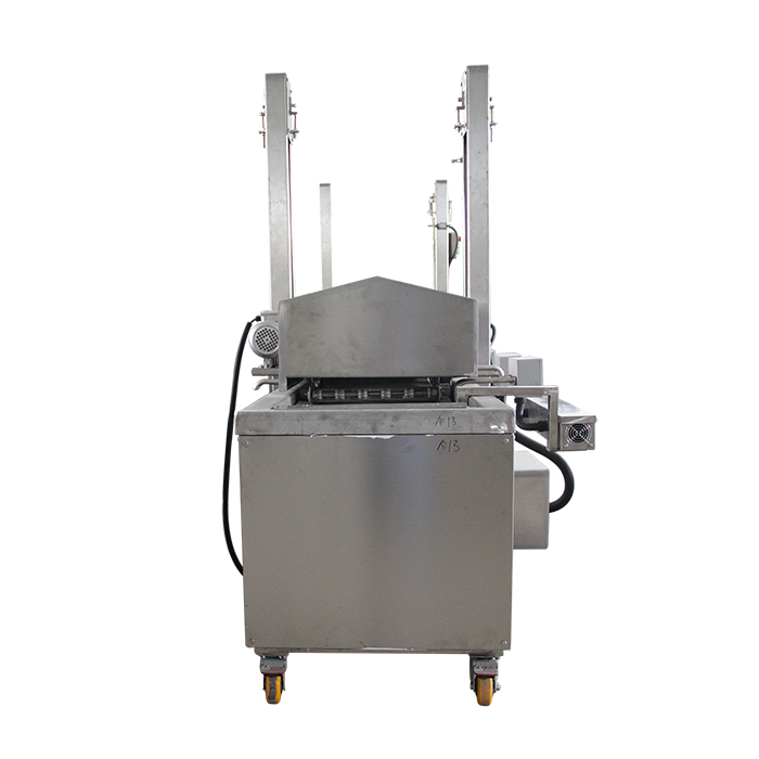 油炸機流水線由網(wǎng)帶輸送系統(tǒng)、自動刮渣系統(tǒng)、濾油系統(tǒng)、網(wǎng)帶提升系統(tǒng)、油溫自動控制系統(tǒng)、電加熱系統(tǒng)等幾部分組成。